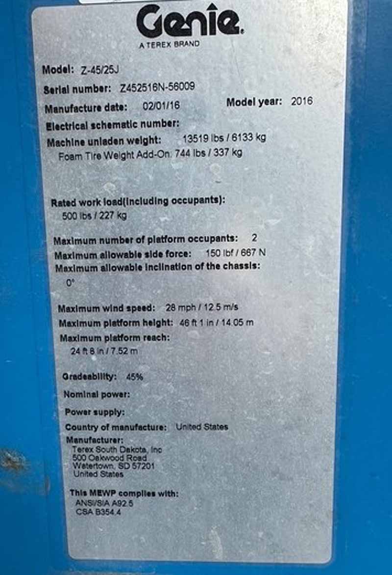 2016 Genie Z45/25JRT