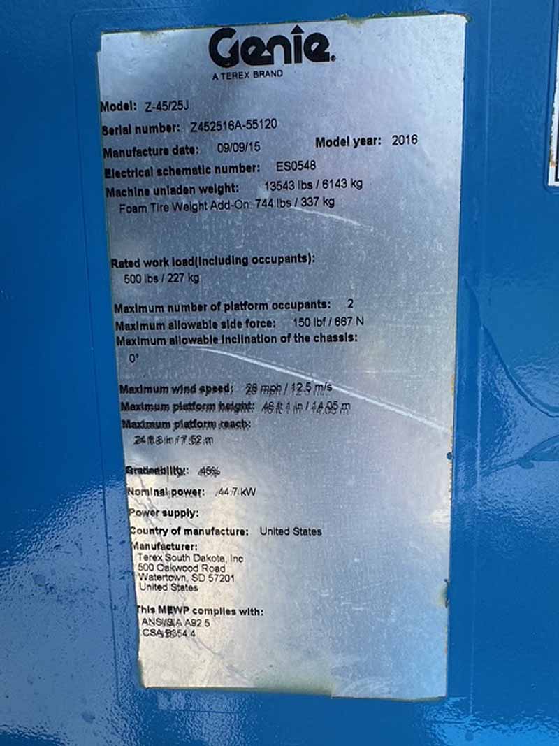 2016 Genie Z45/25J