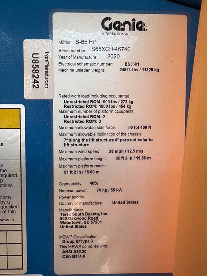 2021 Genie S65HF