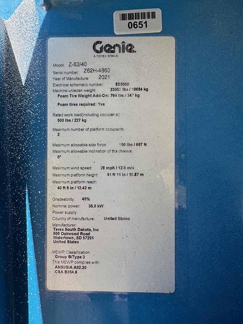 2021 Genie Z62/40